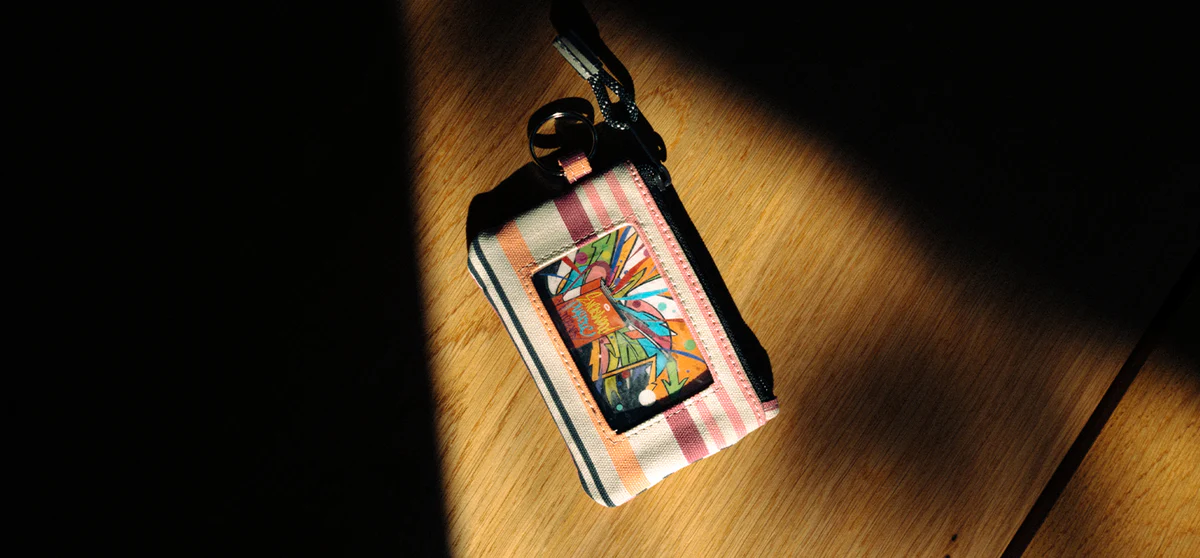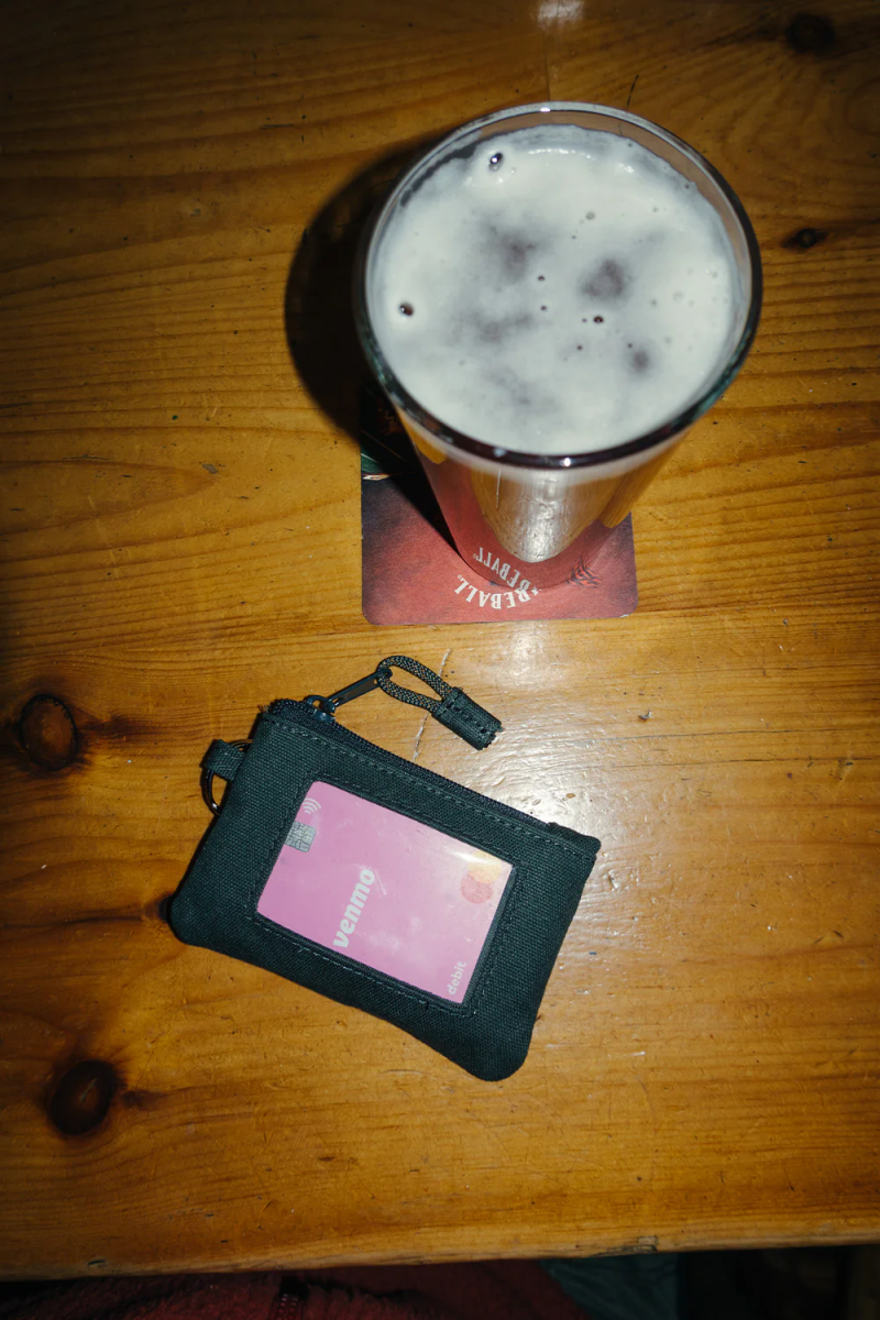 -雙面錢包配有金屬鑰匙圈、帶身分證窗口的拉鍊隔層和繩環拉鍊頭