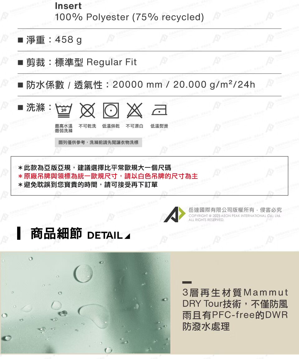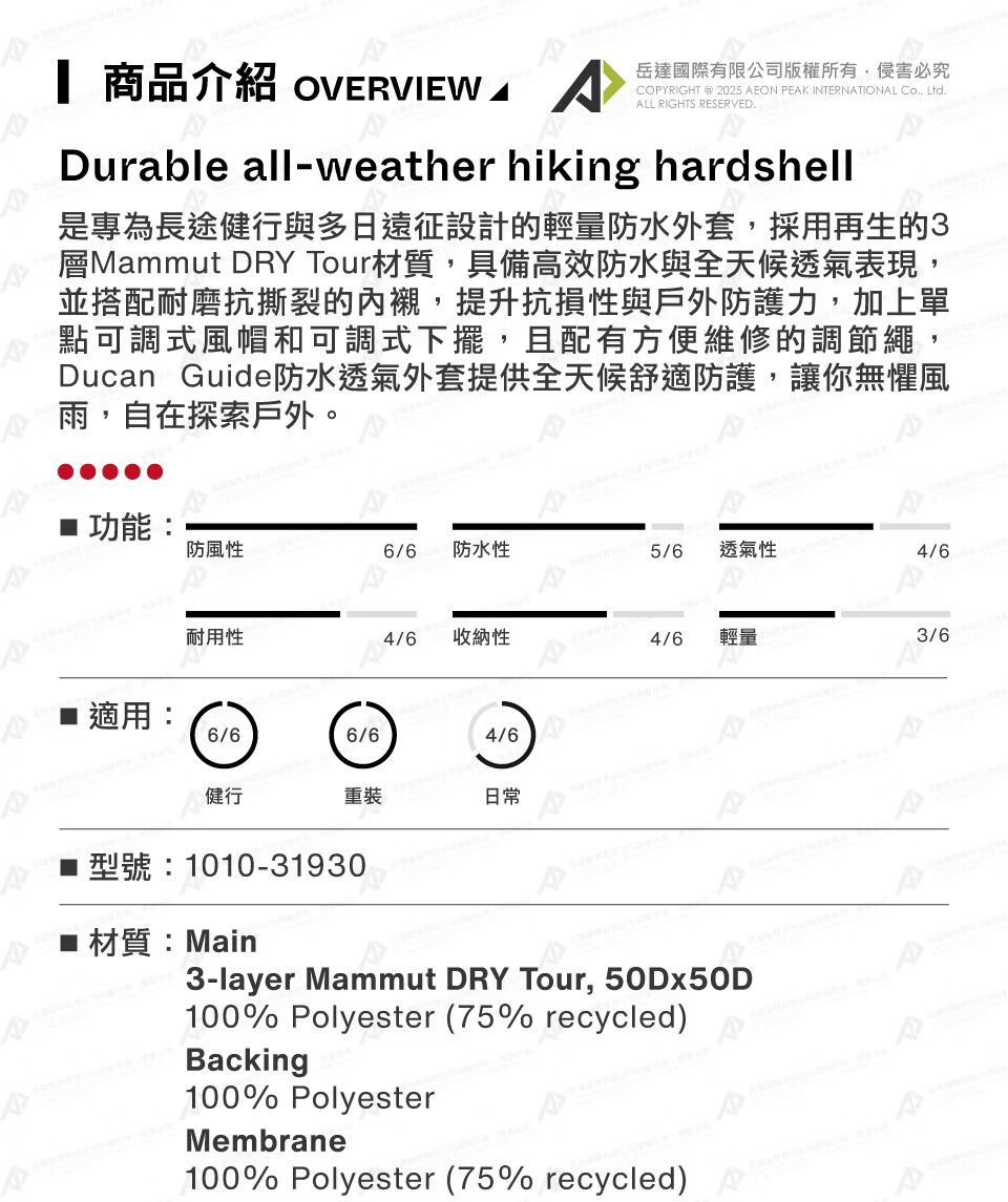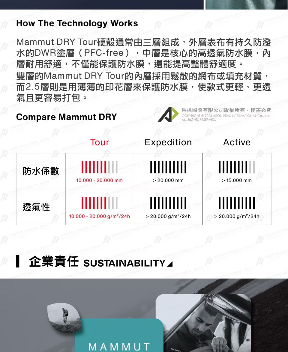 -Mammut DRY Tour 三層膜技術,提供可靠的全天候防護
