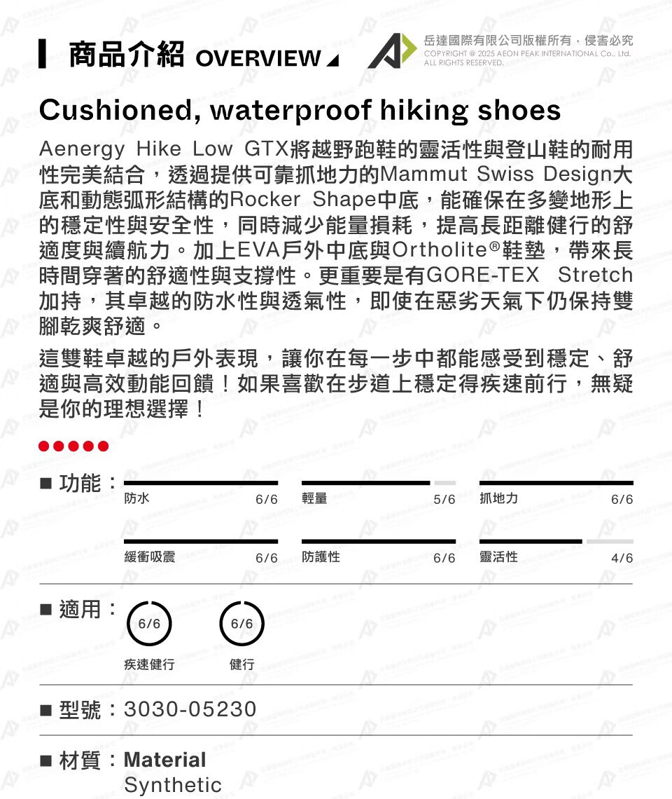 【MAMMUT 長毛象】男款 Aenergy Hike Low GTX 防水低筒GTX健行鞋