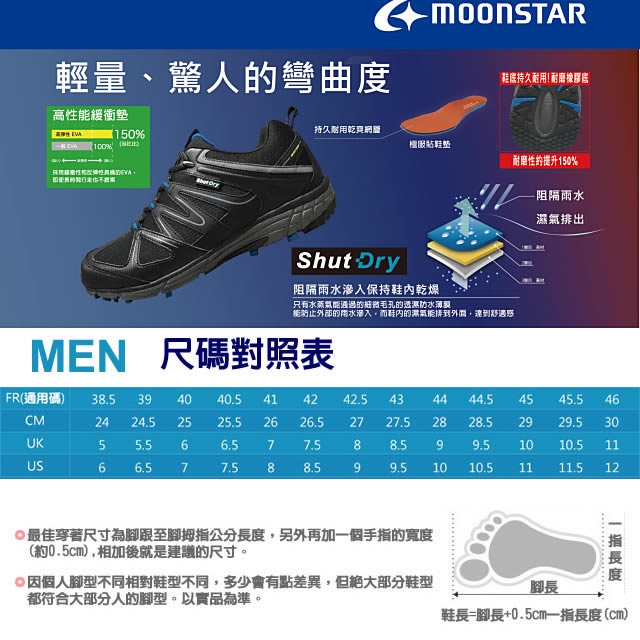 【MOONSTER 月星】過季出清!! 男款 5E超寬楦 SU防水健走鞋