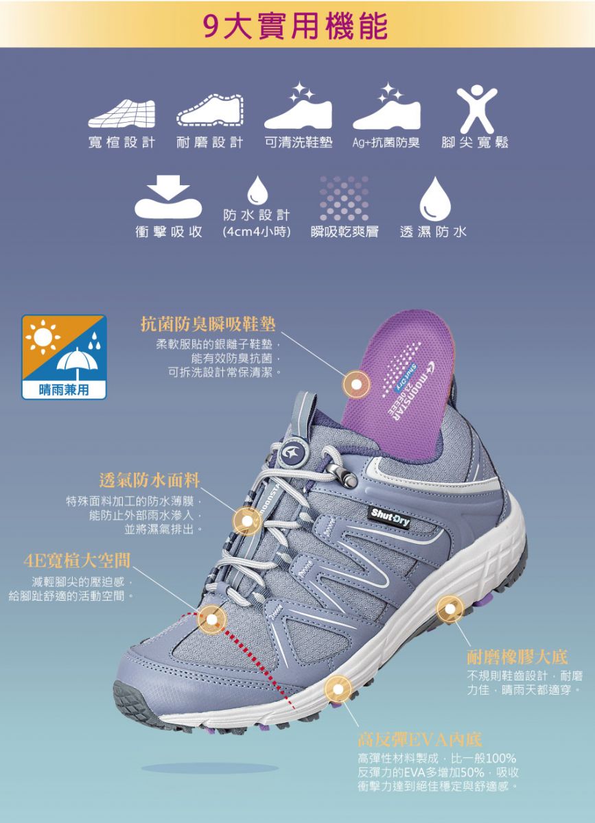 【MOONSTER 月星】過季出清!! 女款 戶外多功能防水透濕系列健走鞋