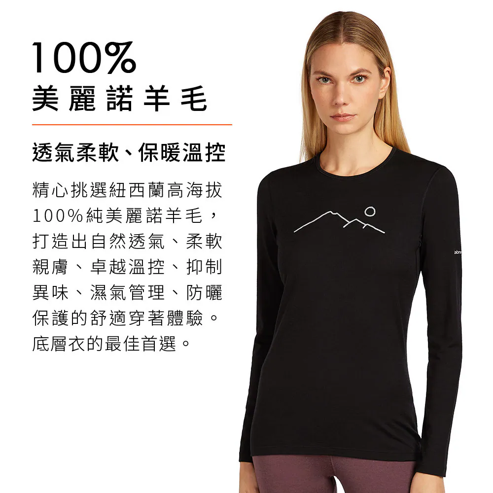 【icebreaker】女款 Oasis 圓領長袖上衣 (山脊輪廓)-200