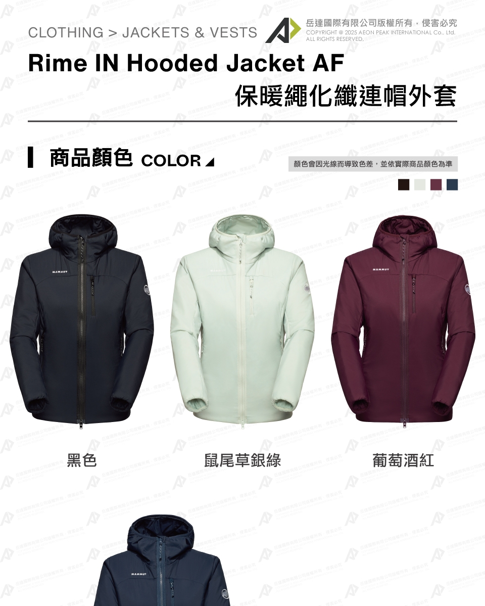 • 【MAMMUT 長毛象】女款 Rime IN Hooded Jacket AF 保暖繩化纖連帽外套