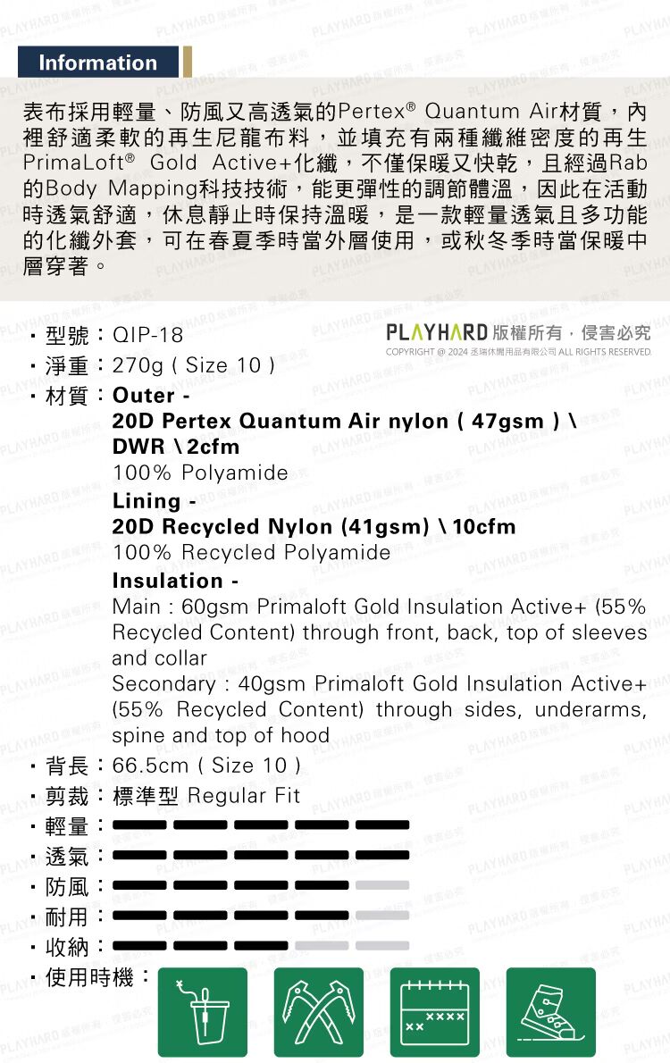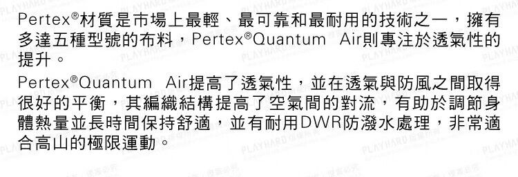 材質:20D Pertex® Quantum Air,採用無氟碳 DWR(47gsm [2cfm])