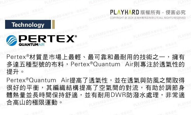 材質:20D Pertex® Quantum Air,採用無氟碳 DWR(47gsm [2cfm])