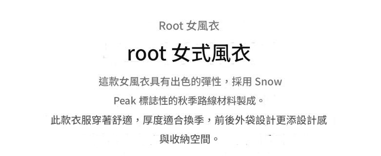 首頁 > 戶外裝備shop > 【Snow Peak】女款 Root 風衣外套