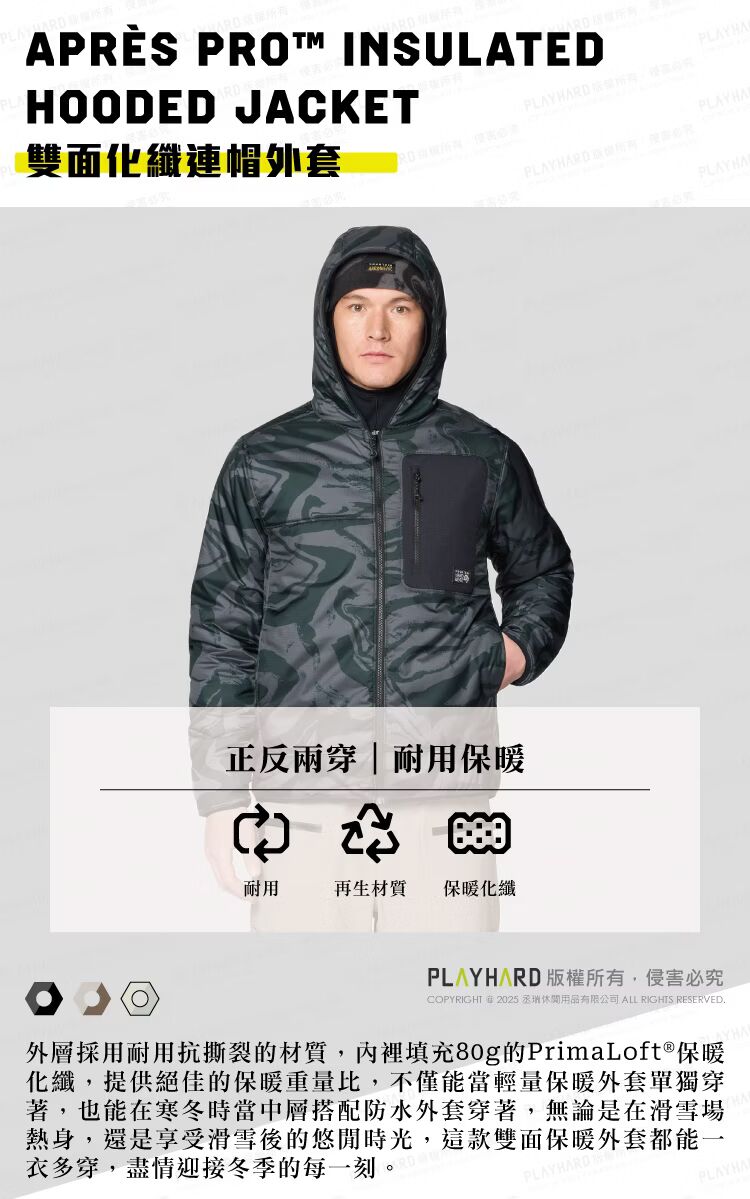 【Mountain Hardwear】男款 Aprés Pro Insulated Hooded Jacket 雙面化纖連帽外套