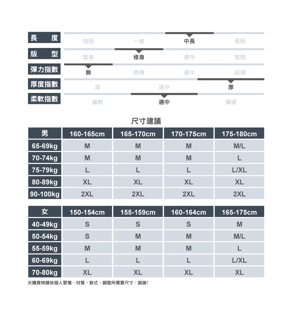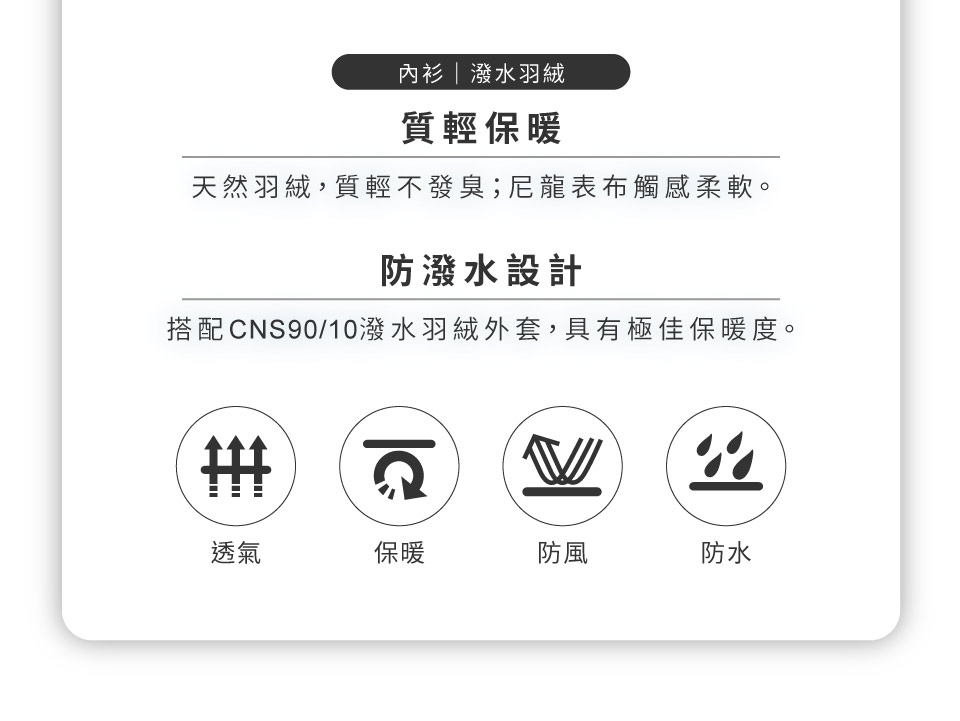 外衫材質:表布/配布-100%聚酯纖維;裡布-100%尼龍纖維