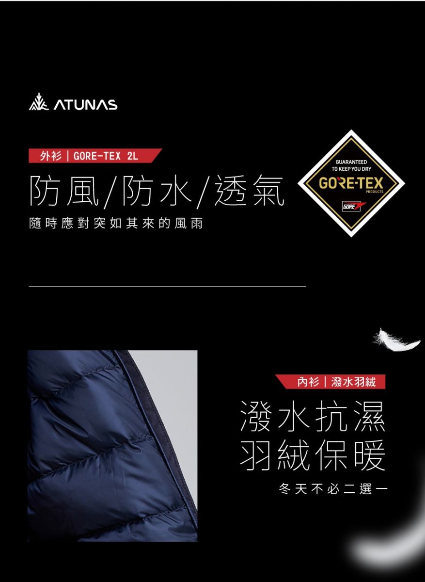 【ATUNAS 歐都納】女款 GORE-TEX防水透氣+保暖羽絨二件式中長版風衣外套
