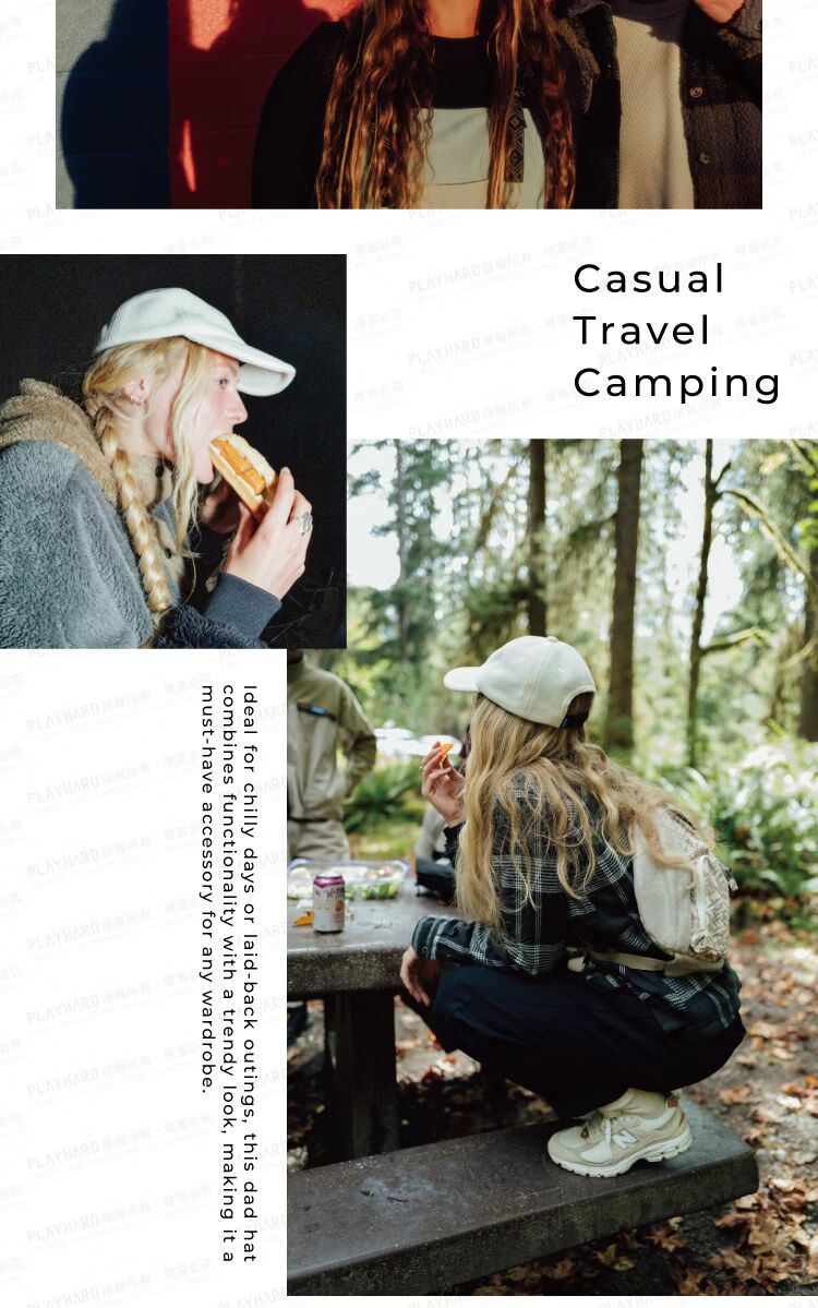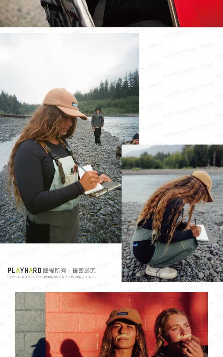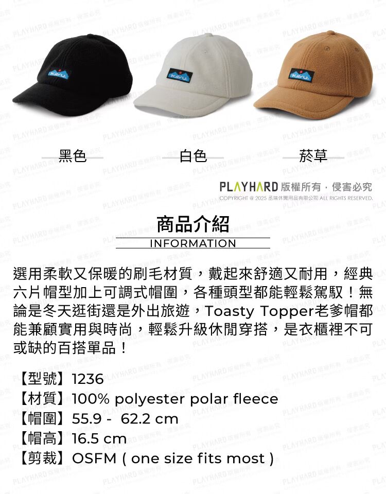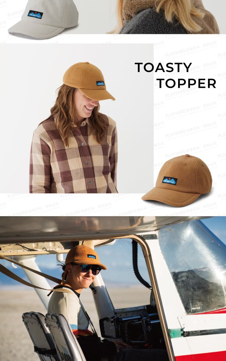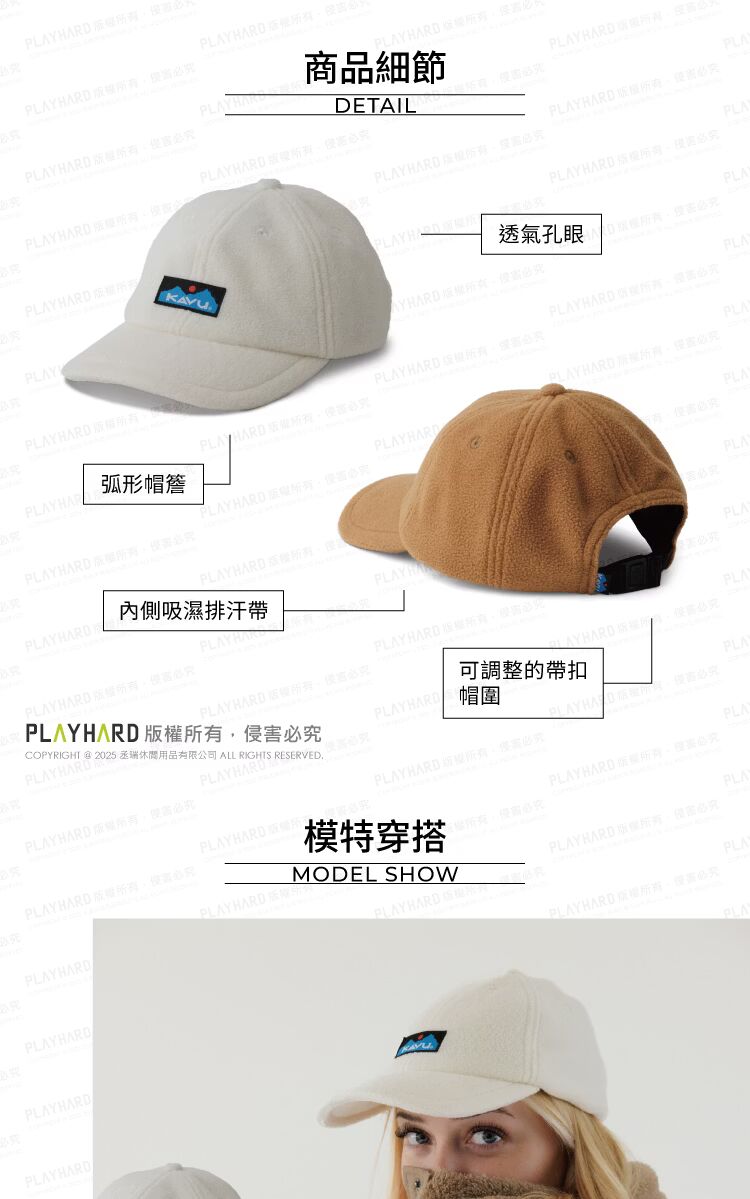 -6 片式帽身,正面有 KAVU 標誌標籤,刺繡孔眼,弧形帽簷