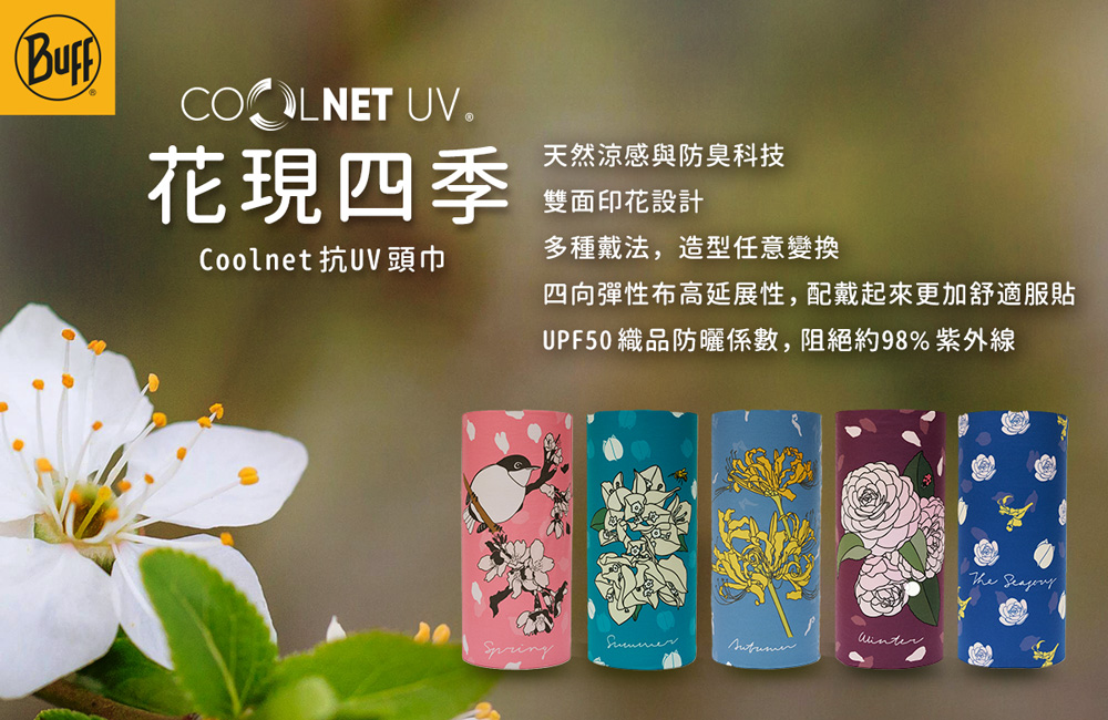「花現四季」系列的頭巾,結合台灣四季在地常見花卉,透過插畫與配色展現自然流轉的節氣美感,傳遞與土地連結的情感記憶。每款設計皆以季節為靈感主軸,搭配花瓣飄落、葉片律動的元素,讓頭巾不只是實用配件,將自然之美融入日常穿搭。