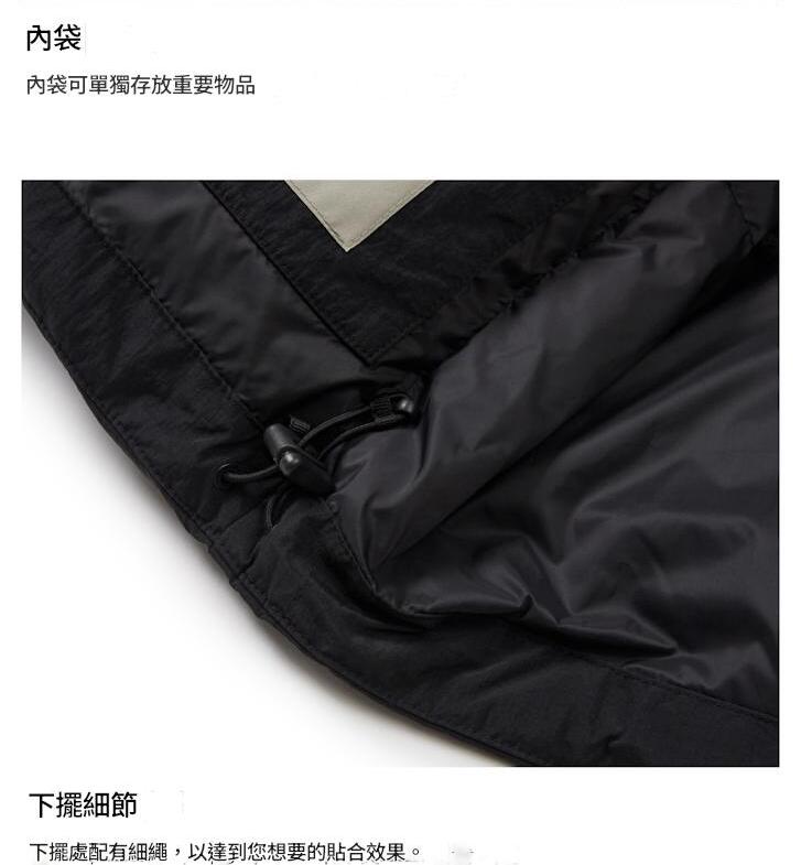 -通過調整袖口、兜帽和下擺上的繩子可以有效阻擋風