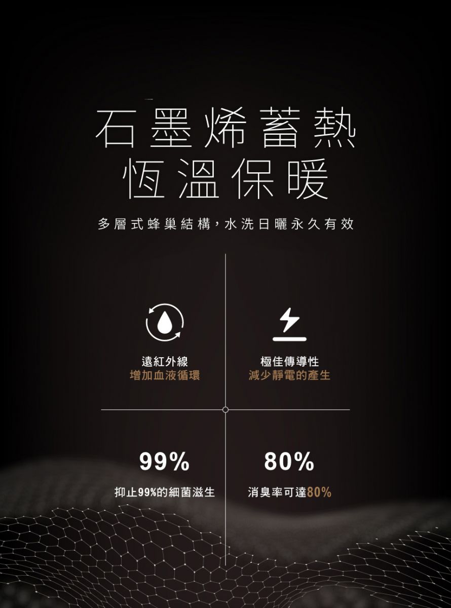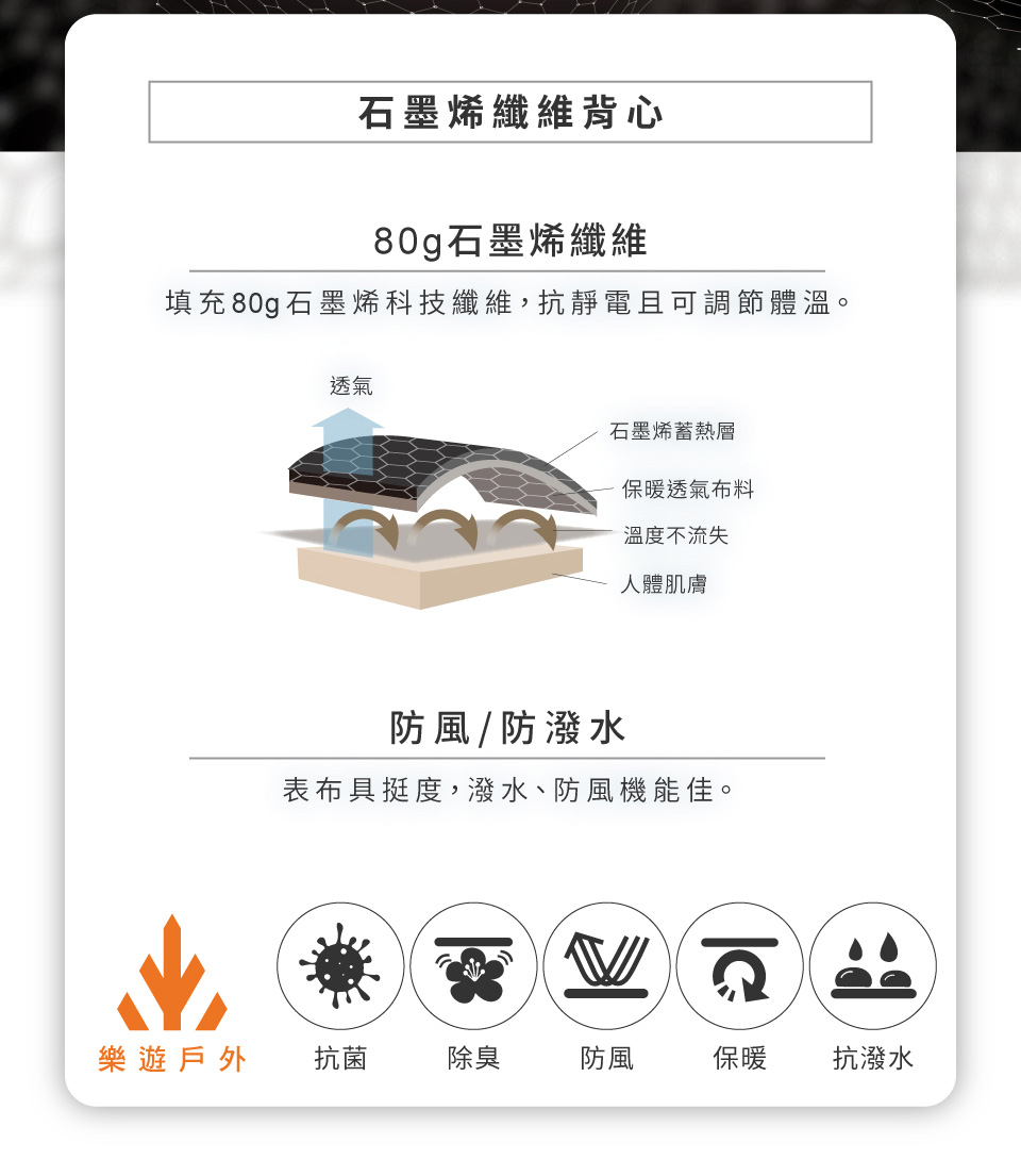 -填充80G石墨烯科技纖維,抗靜電,且調節溫度,適合活動時穿著