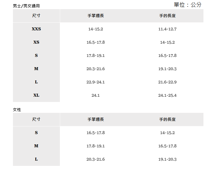 布料襯裡:掌心為超細抓絨,手背為高絨抓絨