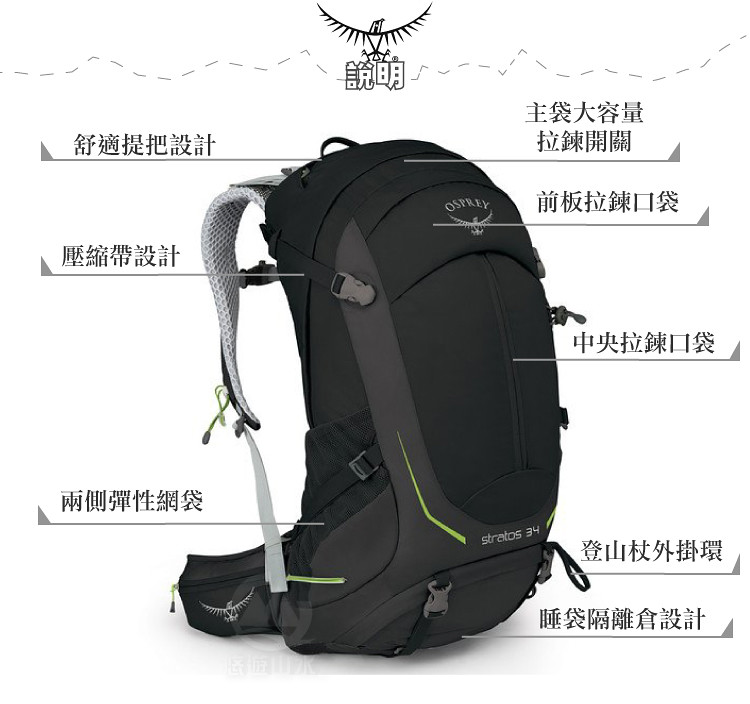 首頁 > 戶外裝備shop > 【Osprey】6折出清!! 男款 Stratos 34L 透氣網背登山背包-黑 S/M