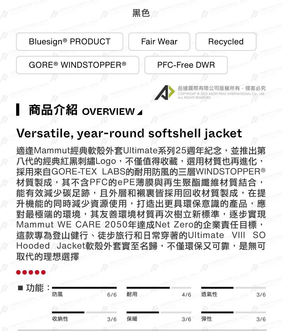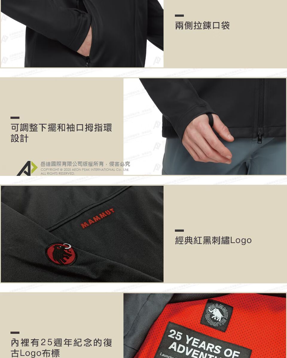【MAMMUT 長毛象】男款 Ultimate VIII SO Hooded Jacket AF25週年紀念款經典紅黑刺繡軟殼外套