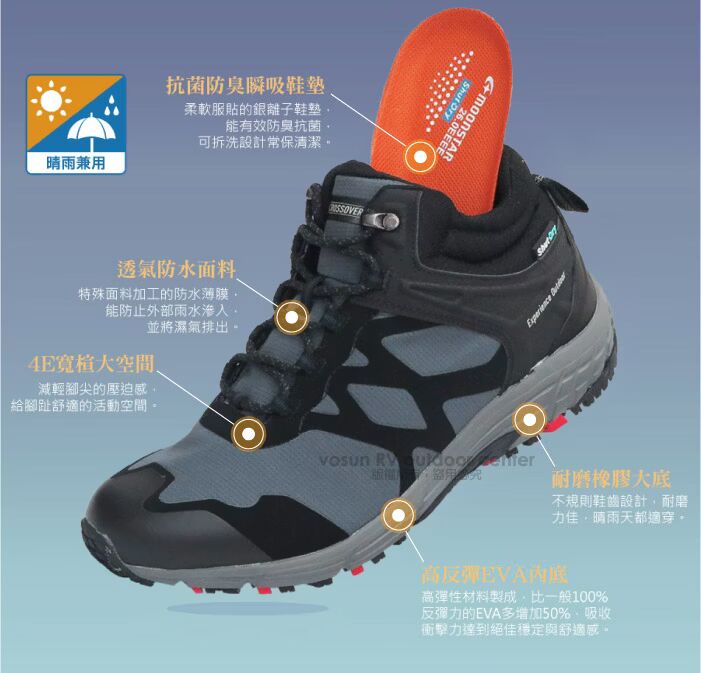 【MOONSTER 月星】過季出清!! 男款 中筒4E楦防水戶外健行鞋/登山鞋