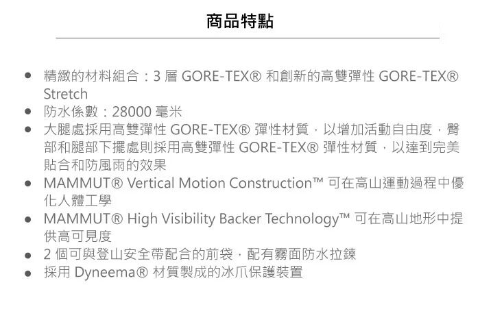 【MAMMUT 長毛象】特價5折!!男款 Nordwand HS Flex 高機能防風防水GORE-TEX雨褲