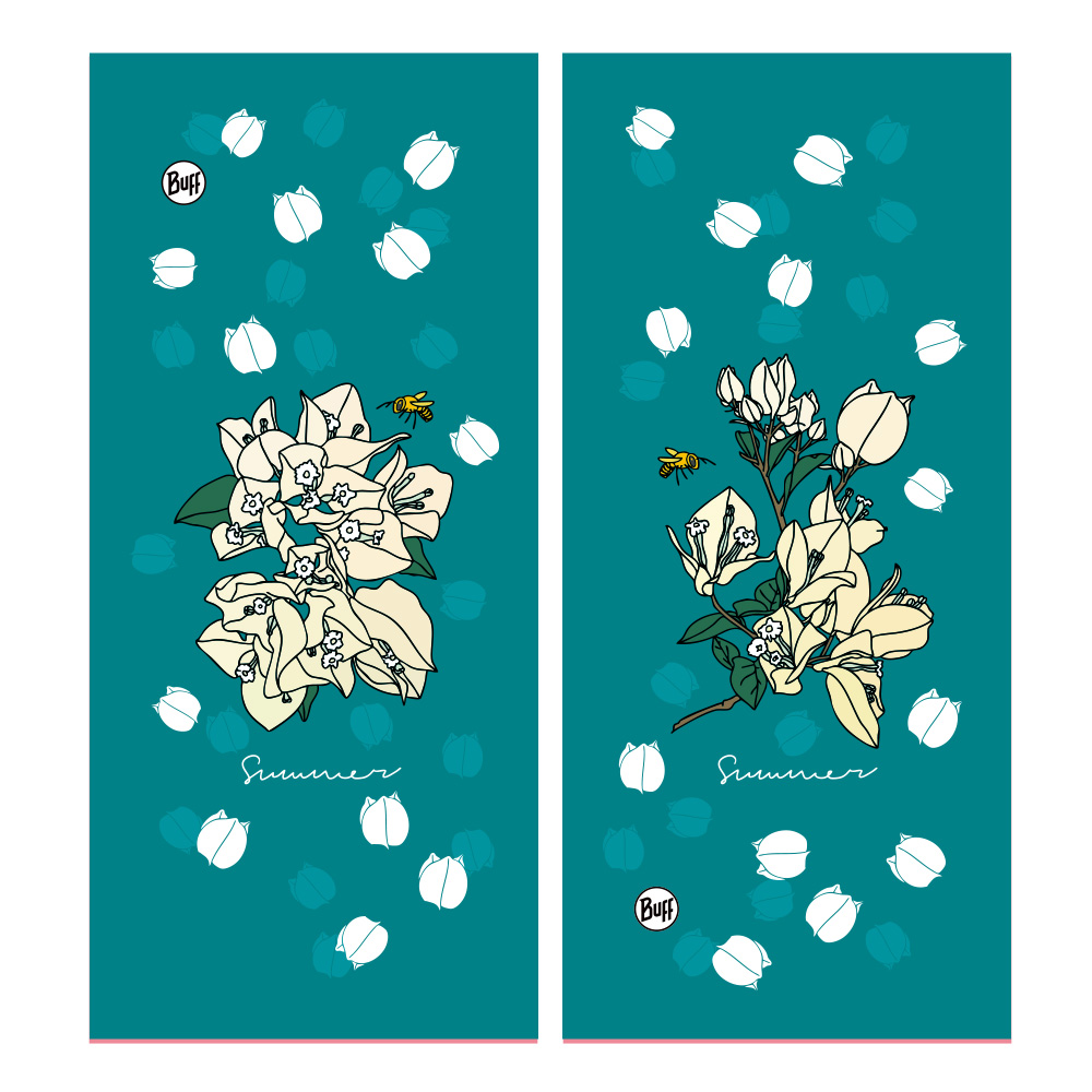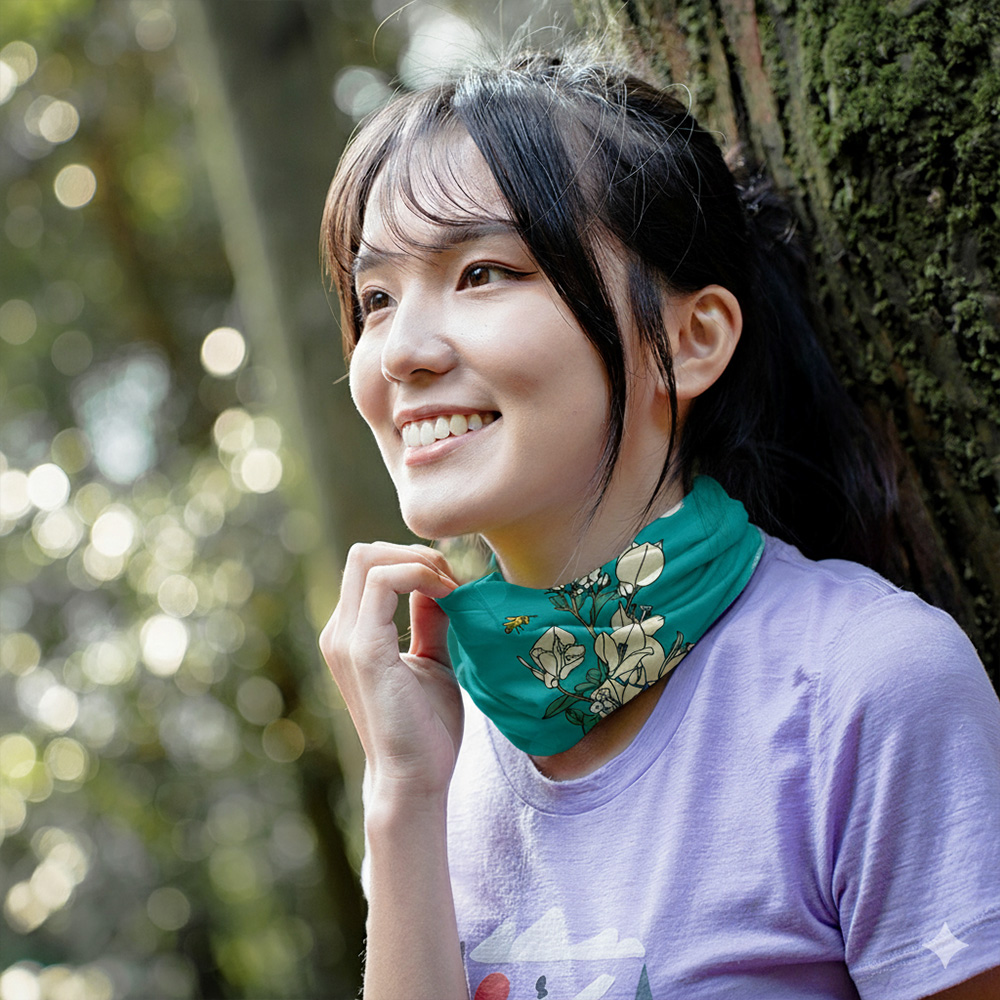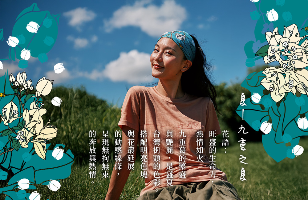 「花現四季」系列的頭巾,結合台灣四季在地常見花卉,透過插畫與配色展現自然流轉的節氣美感,傳遞與土地連結的情感記憶。每款設計皆以季節為靈感主軸,搭配花瓣飄落、葉片律動的元素,讓頭巾不只是實用配件,將自然之美融入日常穿搭。