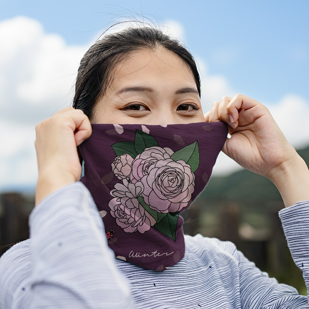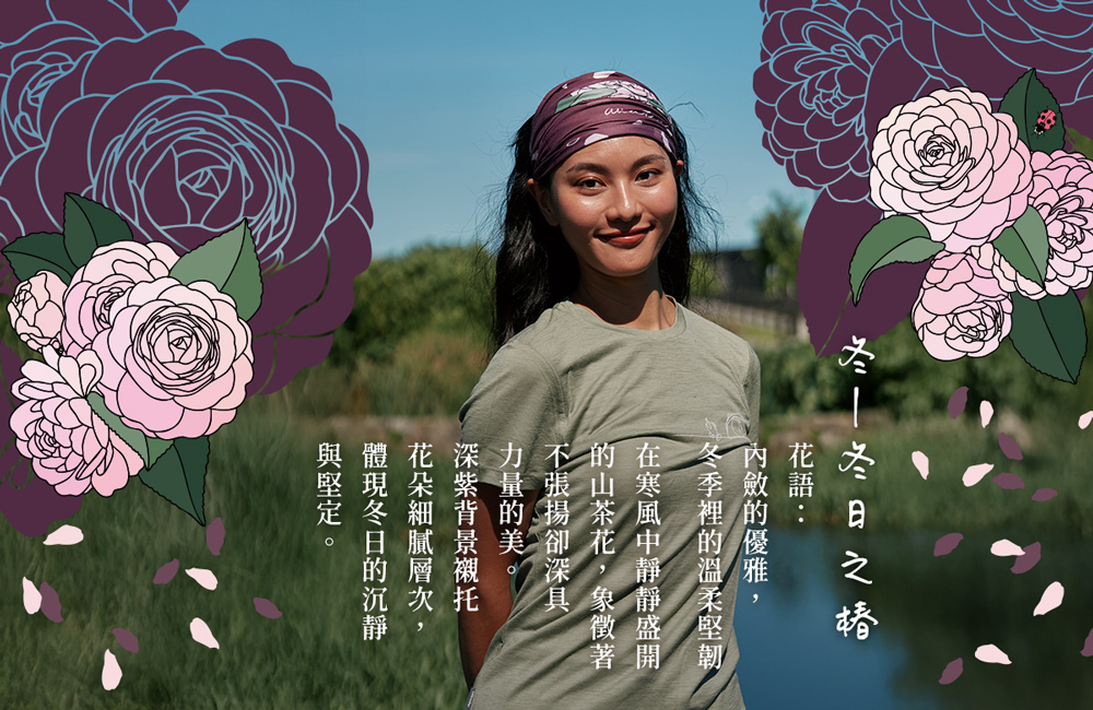 「花現四季」系列的頭巾,結合台灣四季在地常見花卉,透過插畫與配色展現自然流轉的節氣美感,傳遞與土地連結的情感記憶。每款設計皆以季節為靈感主軸,搭配花瓣飄落、葉片律動的元素,讓頭巾不只是實用配件,將自然之美融入日常穿搭。