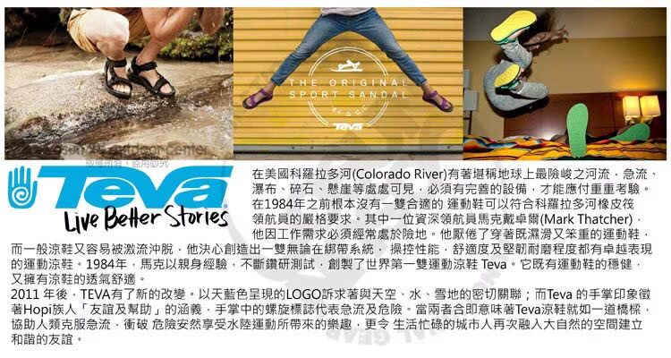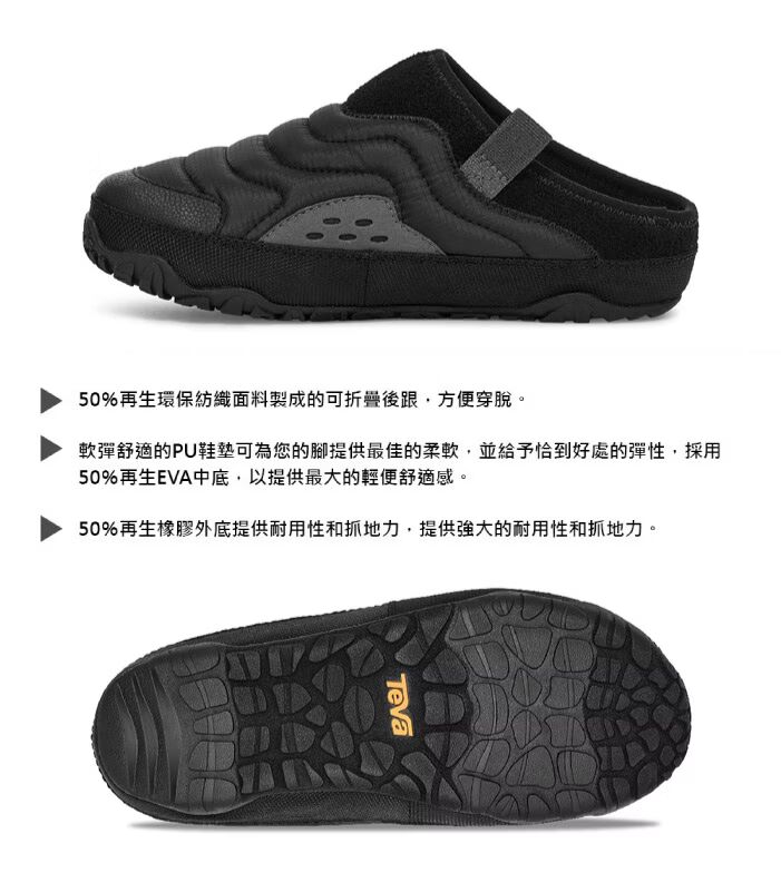 -為冒險而生的鞋款,抗水100%再生防撕裂鞋面靈感來自經 Teva RAPID RESIST保護塗層處理的經典戶外裝備,使水滴不會停留在鞋面上
