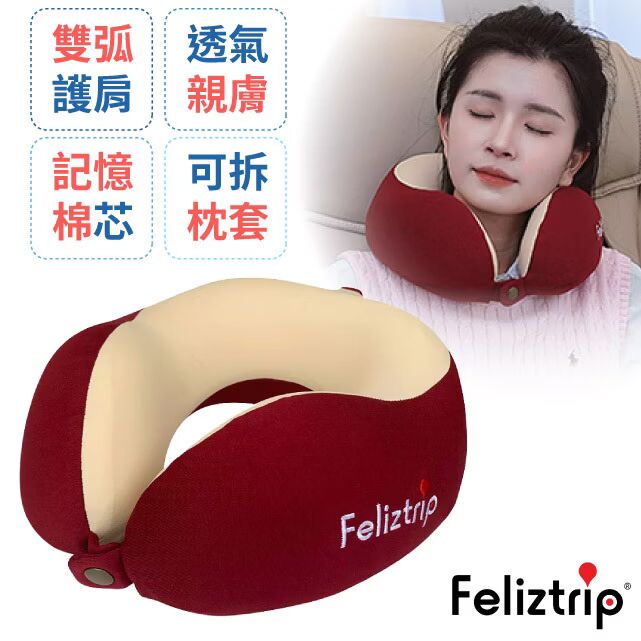 • 【Feliztrip】回彈運動記憶棉人體工學護頸U型枕頭