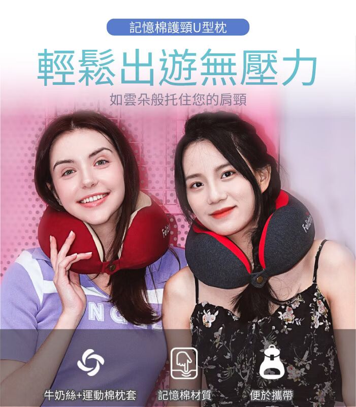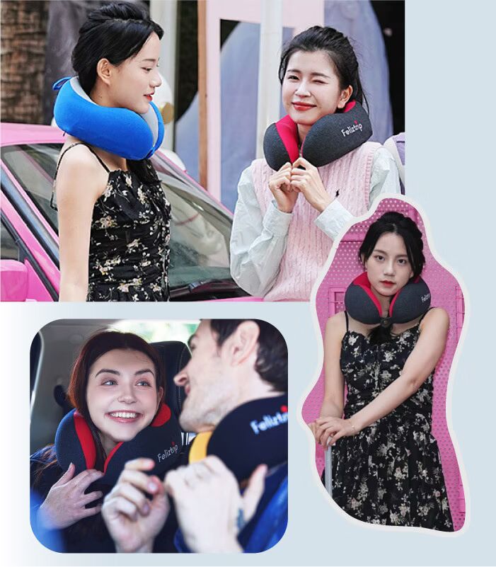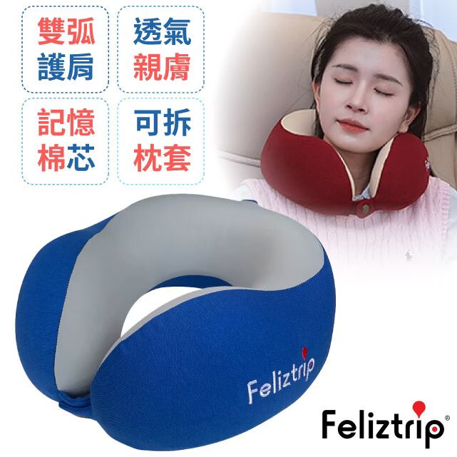 • 【Feliztrip】回彈運動記憶棉人體工學護頸U型枕頭