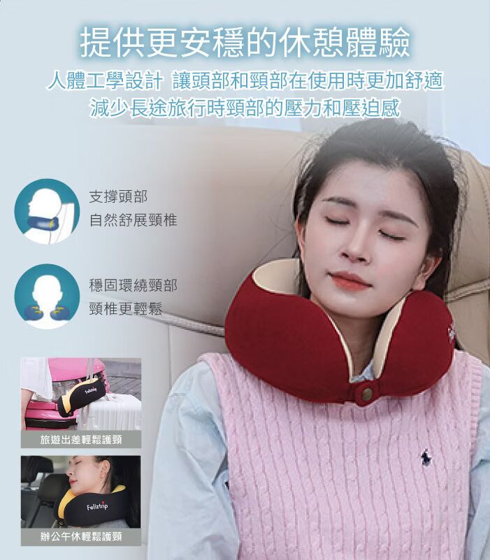 首頁 > 戶外裝備shop > 【Feliztrip】回彈運動記憶棉人體工學護頸U型枕頭