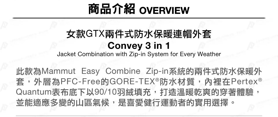 【MAMMUT 長毛象】過季出清75折!! 女款 Convey 3 in 1 兩件式防水羽絨外套