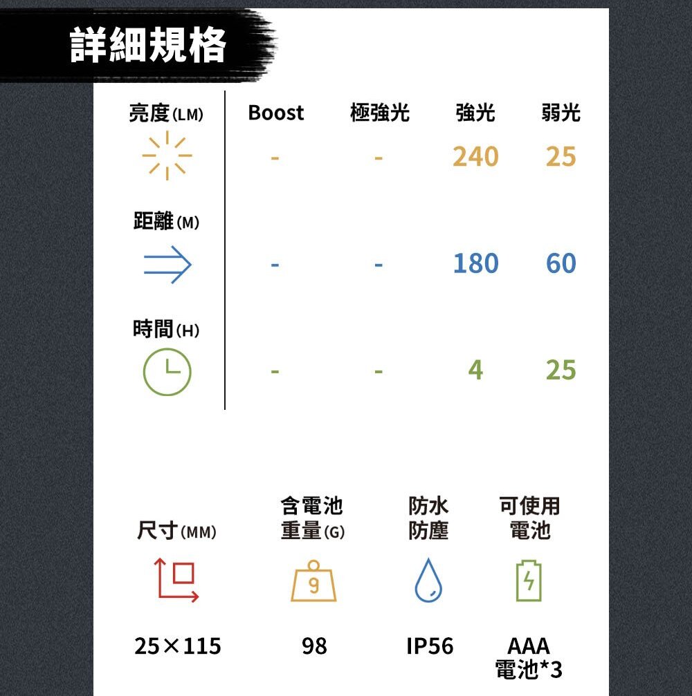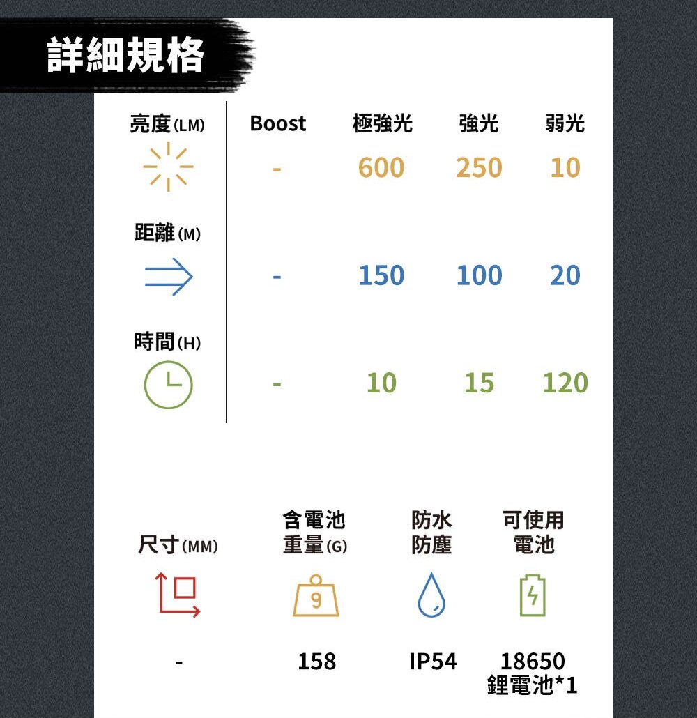 -整合手持照明、頭戴照明與備用手電筒