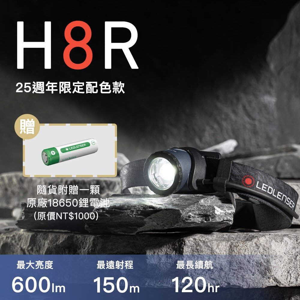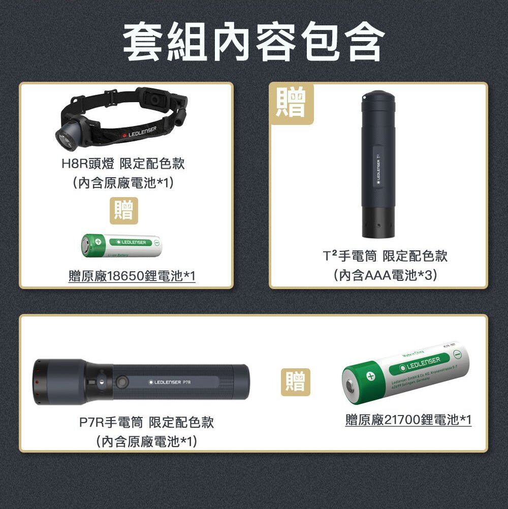 • 【LEDLENSER】25週年限定套組-H8R頭燈限定配色款+P7R手電筒限定配色款+T²手電筒